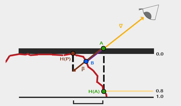 The idea is to think differently about the texture coordinate, considering that the fragment’s surface is higher or lower than it actually is. So the UV coordinate is literally above or below the actual vertices from the vertex shader. If you take a look at the image below, what we want to find is Point B, rather than A. But A is what we actually see (in fragment space). Then how would you calculate Point B? You can think of it as similar to ray casting. Since you have the view direction, you can figure out the P vector by using the height (displacement) map, then we can approximate the displacement to Point B. But it won’t always work - I will explain this in the limitations.